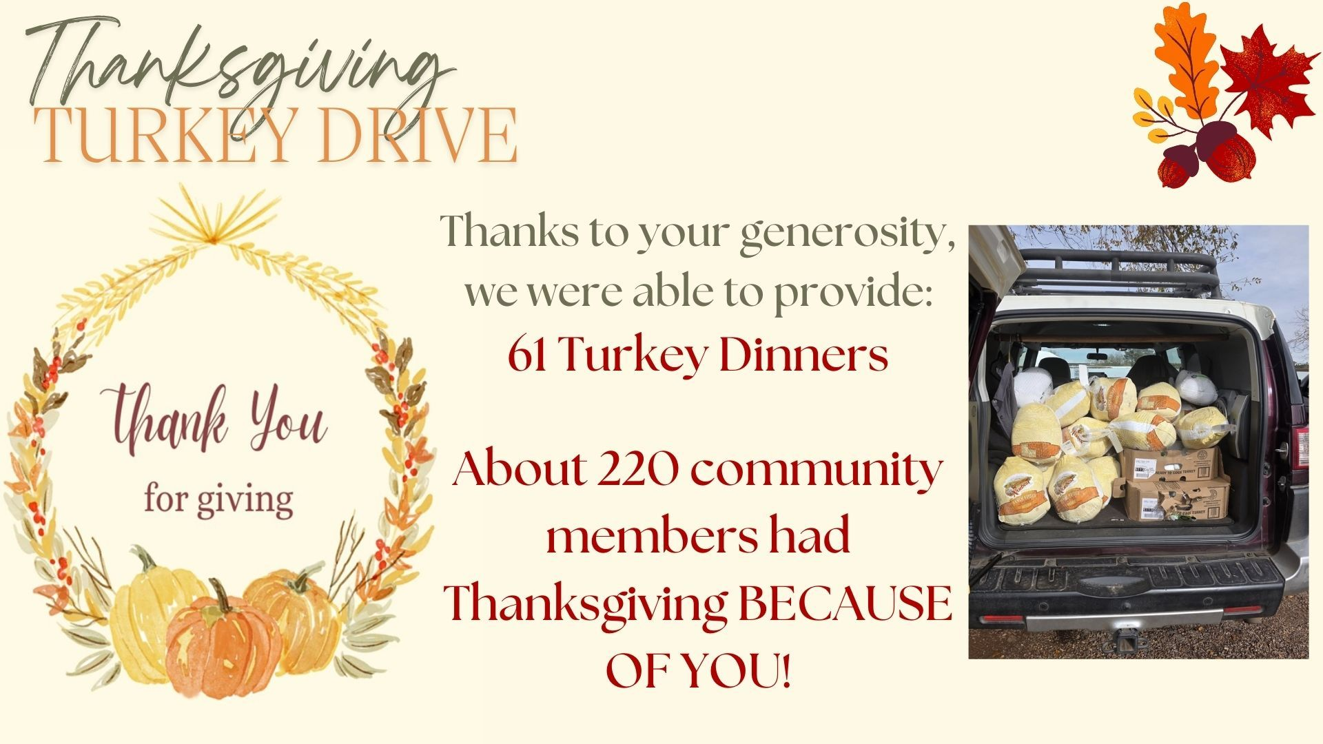 Every year, our congregation collects food items to put in Thanksgiving Meal boxes for families in our community.